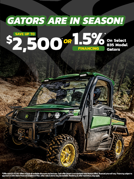 *Offer ends 01/31/2026. Offers include all available discounts and bonuses. Cash offer shown is not stackable with finance offers; financed price will vary. Financing subject to approval on John Deere Financial Installment Plan; other rates & terms may be available. Residency & other restrictions may apply.